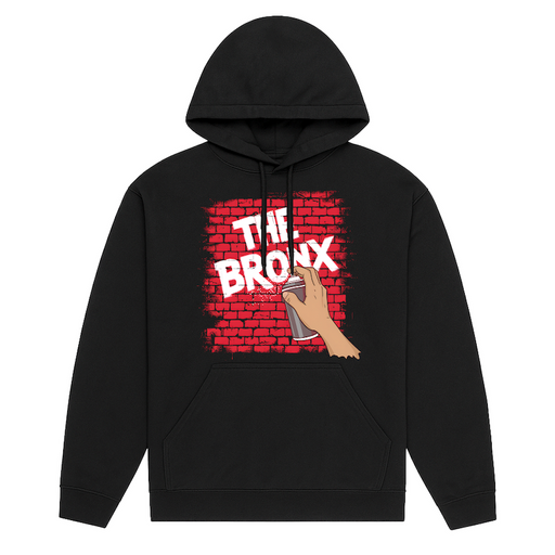 Showcase your Bronx pride with our custom graphic hoodie, featuring a simple yet eye-catching design of a red brick wall with a hand graffitiing "T...