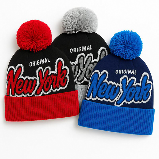 A bold, classic NYC staple built for everyday wear. Our adult polyester woven-print pom beanie features a clean “Original New York” script across t...