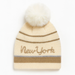 The embroidered velvet-textured “New York” script adds a refined touch, while the soft cream-and-tan color palette gives the piece a clean, modern winter look. Lightweight yet warm, this beanie is perfect for everyday cold-weather wear — from city strolls to winter weekends out.
