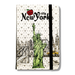 Celebrate the city that never sleeps with this dazzling Stone Studded Liberty Skyline New York Journal. Featuring a hand-sketched New York skyline with the Statue of Liberty front and center, this 5x7" notebook is accented with shimmering rhinestone-style studs throughout the cover. A yellow taxi and bridge add iconic city flair while a black elastic band keeps your notes secure.