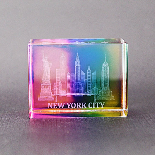 3D Full Color Manhattan "NEW YORK CITY" Skyline Laser Etched Crystal (2 sizes) | New York City Souvenir | NYC Souvenir Travel Gift