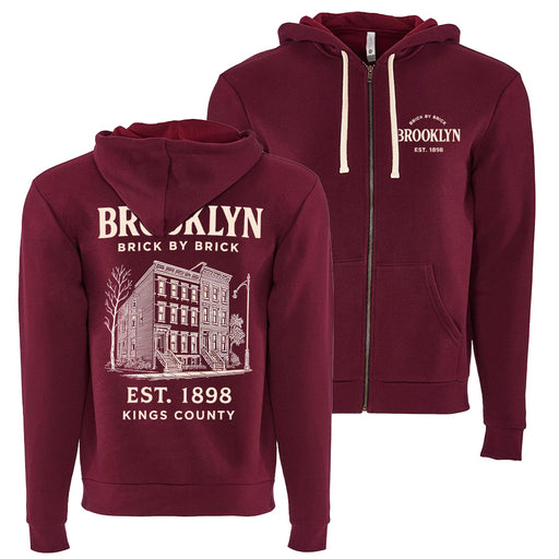 View full detailsBrooklyn - EST. 1898 Kings County Architecture Maroon Zip Hoodie