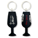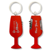 Pewter-based keychain with built-in mini flip cutter, corkscrew, and bottle opener. Features a sleek wine-glass shape with minimalist NYC monument decal — Statue of Liberty, Brooklyn Bridge, and "NEW YORK" printed on both sides. Available in Red or Black. Stylish, functional, and city-inspired.