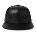 Sleek and bold, this black faux leather snapback features raised BROOKLYN embroidery in white or black across the front and back. With a structured fit, flat brim, and white adjustable snap, it’s built for clean streetwear style with borough pride.