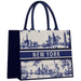 A refined tribute to the city that never sleeps, this structured cotton book tote features a panoramic toile-style illustration of New York’s most iconic landmarks—from the Empire State Building to the Statue of Liberty. Crafted from durable woven cotton and finished with bold “NEW YORK CITY” typography, it’s available in four monochrome palettes: Jet Black, Metropolitan Navy, Urban Burgundy, and Blush Rose.