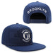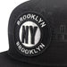 Classic borough pride, embroidered front to back. This structured snapback features a bold circular "NY BROOKLYN" crest on the front, framed by a tonal Brooklyn skyline — including the Coney Island Ferris Wheel and iconic bridge. Embroidered “BROOKLYN” arches across the back above the adjustable snap closure. Available in clean Black or deep Navy.
