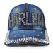 HARLEM Rhinestone Denim Hat – Washed Blue with Leather Strap