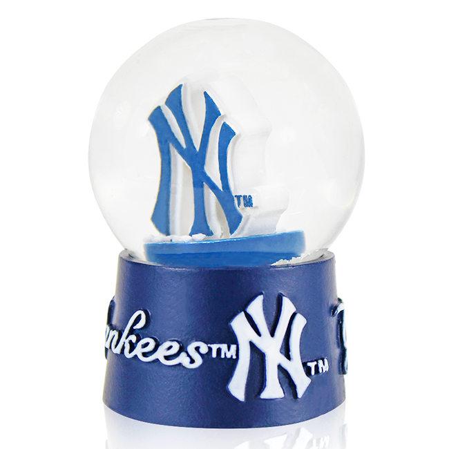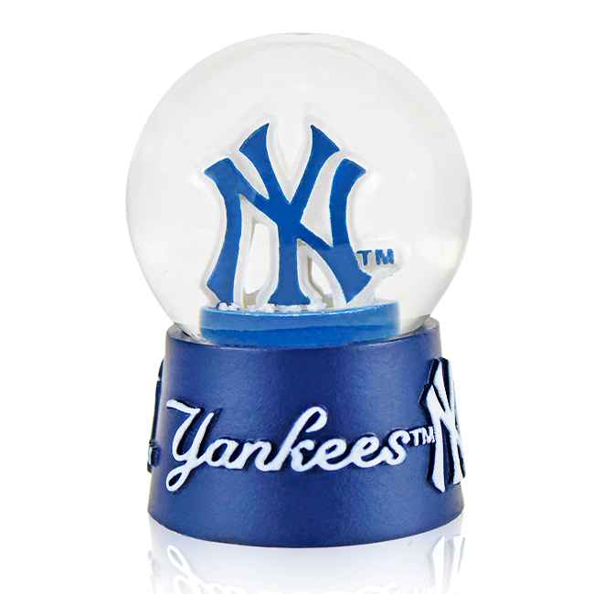 An excellent addition to our official Yankees Shop! This New York Yankees snow globe is a must have for the fan of the Bronx Bombers. Looking for a cool and personal gift this holiday season? Enjoy the great craftsmanship of this globe made by one of our best manufacturers of all things Yankees. Incorporating a pure Yankee blue ceramic base with raised lettering & the team insignias. The New York Yankees snow globe can be seen holding within it a ceramic totem in the shape of the infamous team insignia known all around the world. Filled with glycerin and water for long lasting effects.