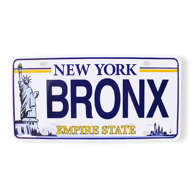 Show your Bronx pride with this classic-style decorative license plate featuring the iconic Statue of Liberty and NYC skyline. Bold "BRONX" lettering on authentic Empire State design.