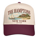 Capture the timeless charm of Long Island’s South Fork with this vintage-inspired twill trucker cap. The front panel features a scenic Hampton shoreline—complete with a sailboat, dunes, and a classic shingle-style home—framed by bold “THE HAMPTONS – NEW YORK” lettering and commemorating the region’s 1648 founding. On the back, a clean anchor emblem represents strength and heritage, with “SOUTH FORK” arched above and “Long Island • Suffolk County” neatly below—tying the piece together with local pride.
